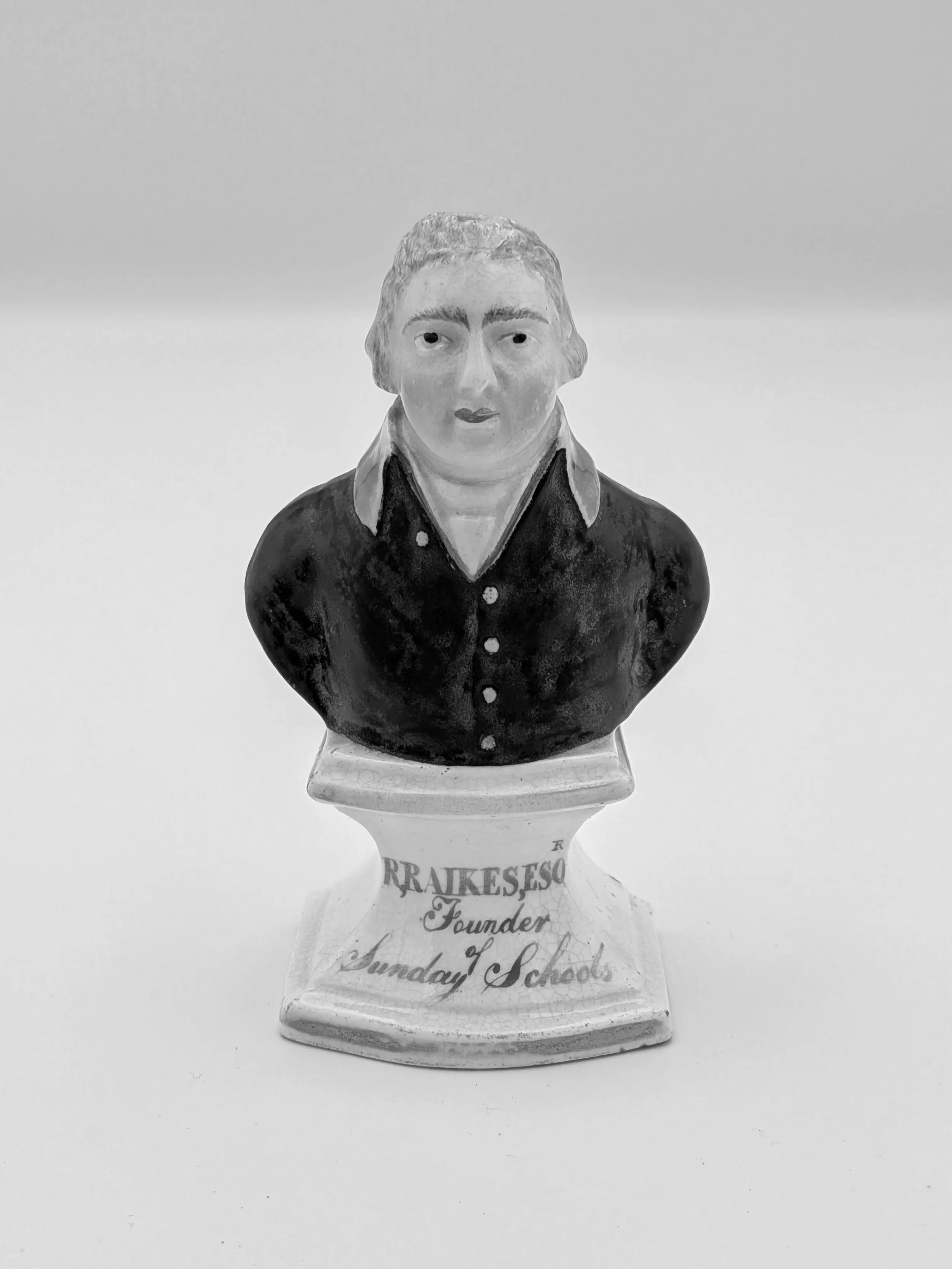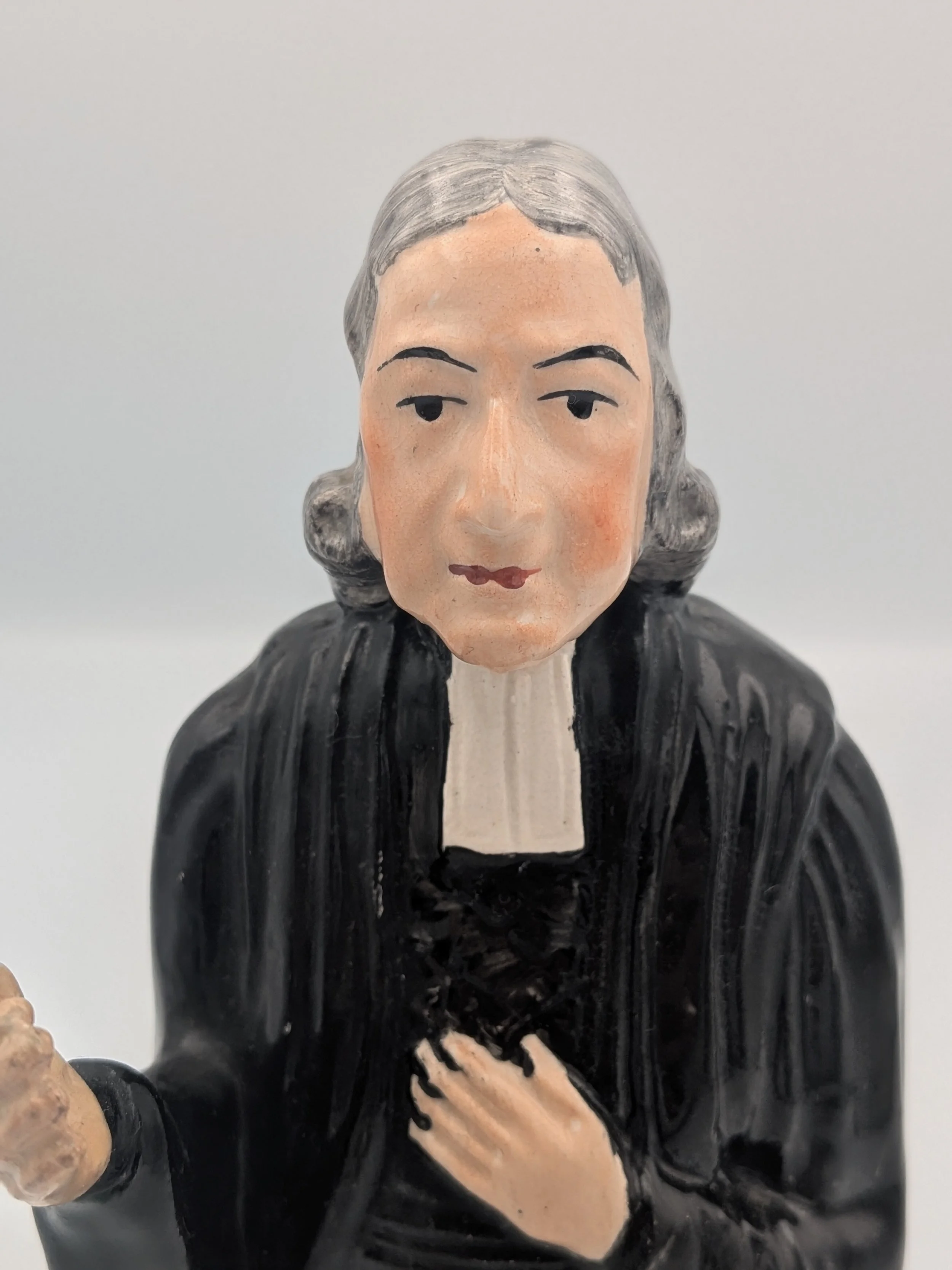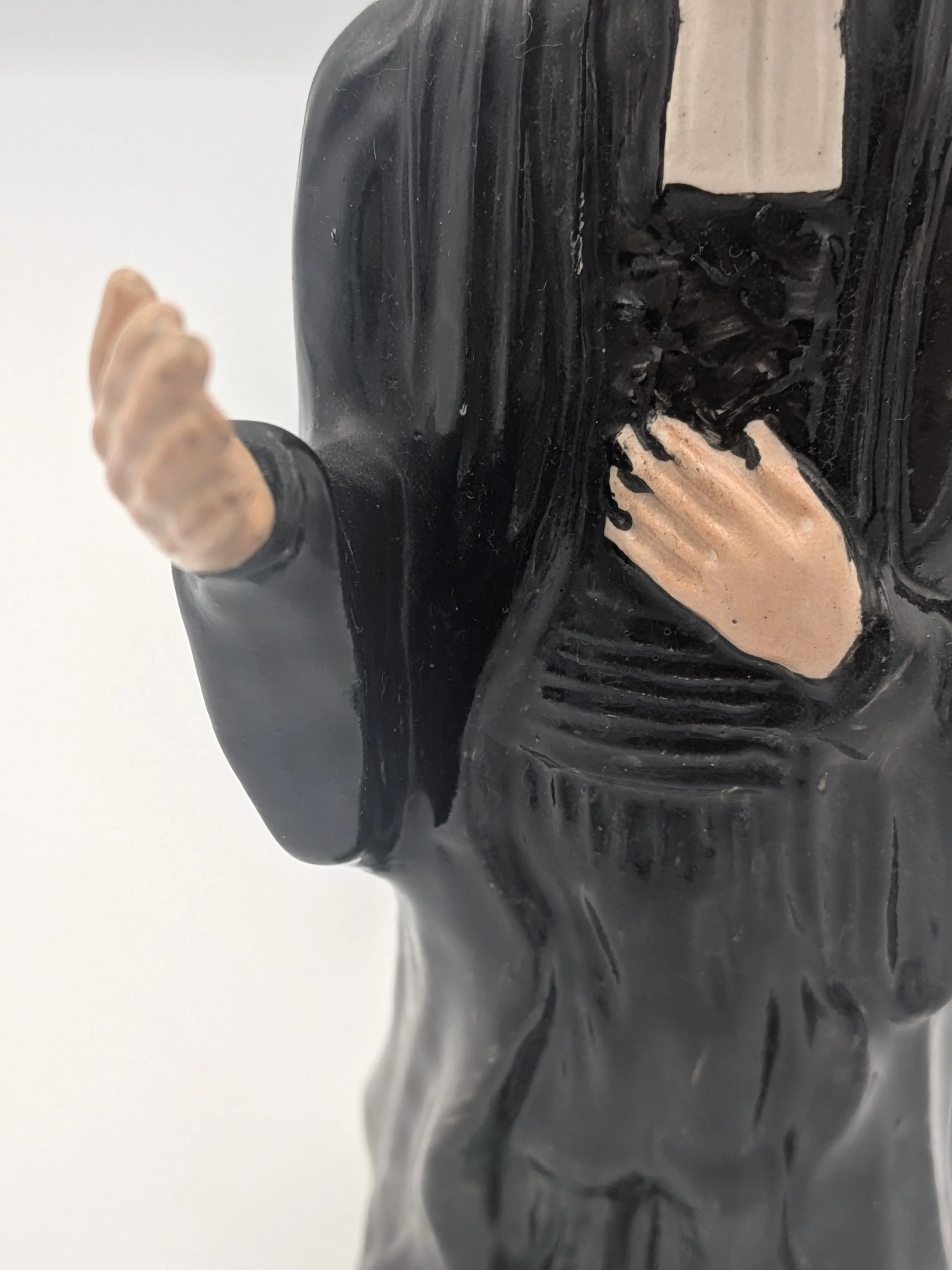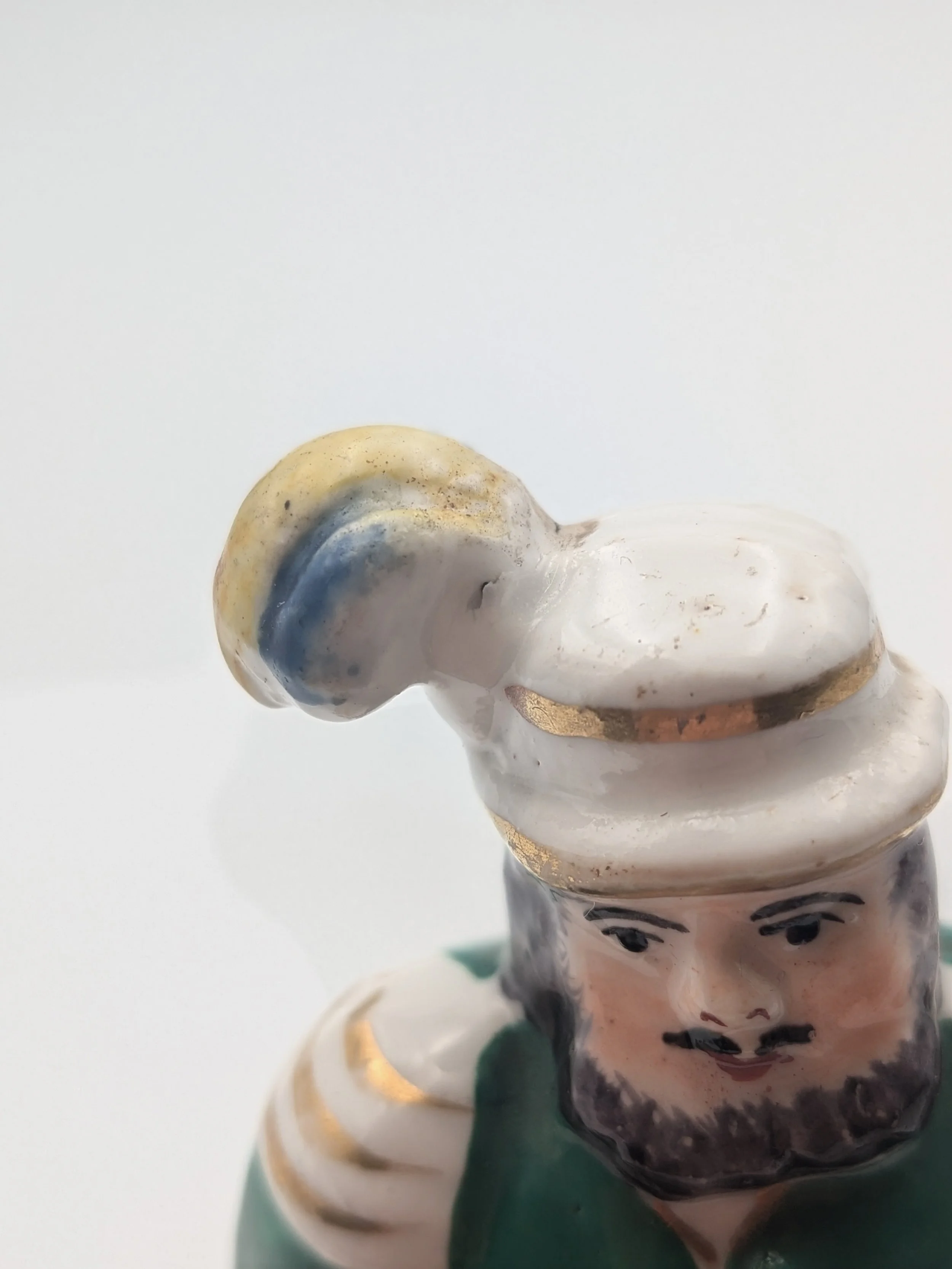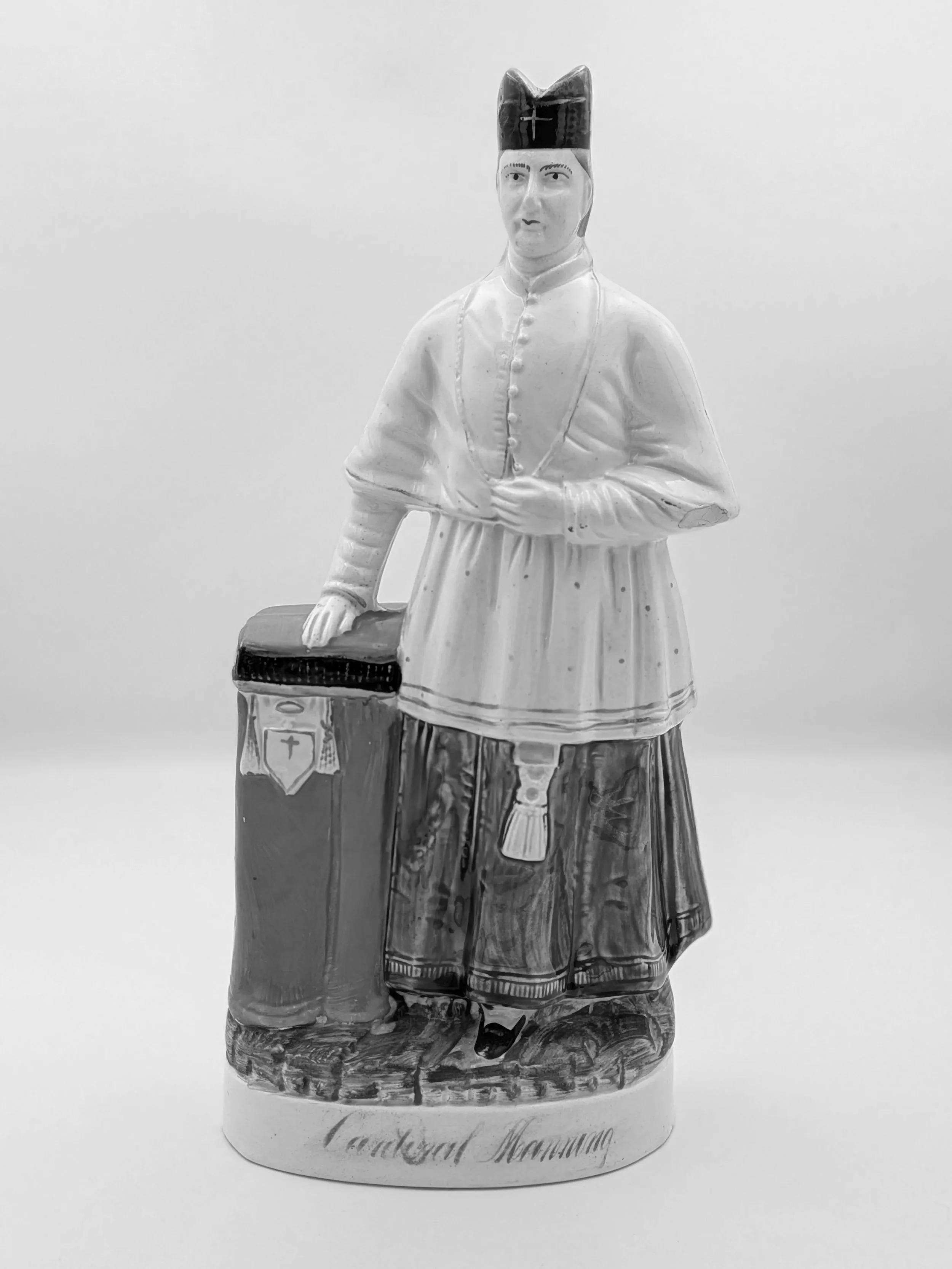 From the 1840s onwards, the market for Staffordshire figures boomed and potters moved to a simpler, more ‘streamlined’ production style, with many figures decorated on the frontside only (‘flatbacks’) and most figures being produced from a single press mould. The remarkably legible effect this simple and efficient production method could produce is one of the great attraction of Victorian Staffordshire figures.
