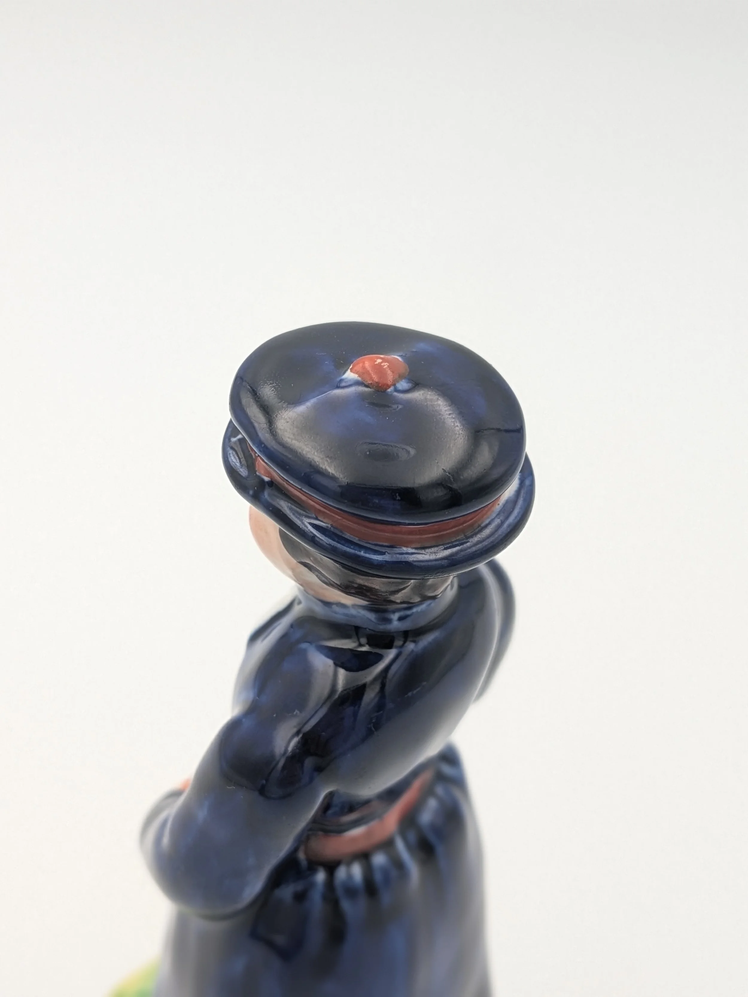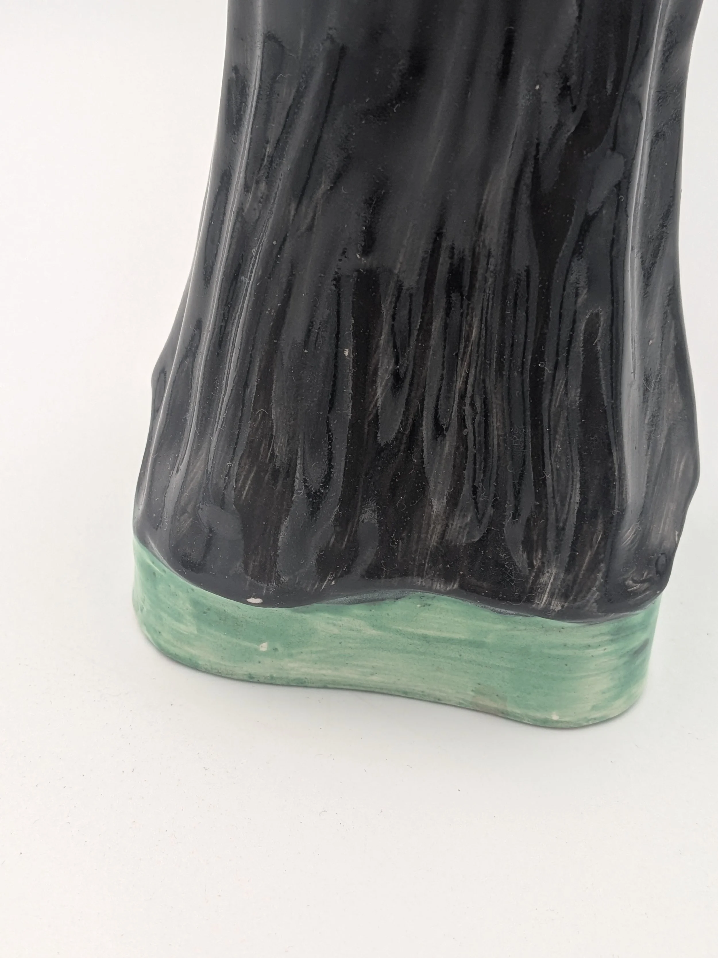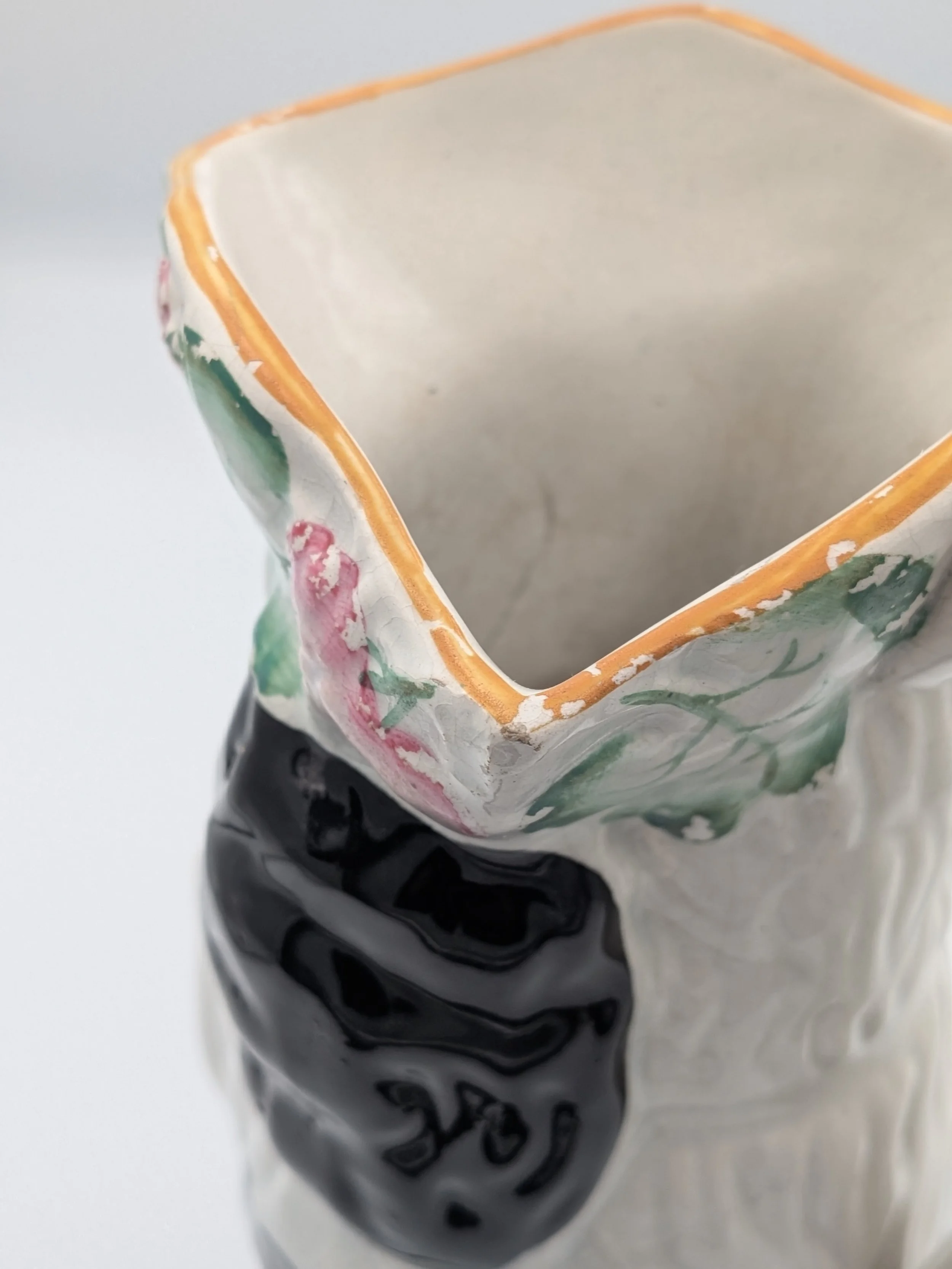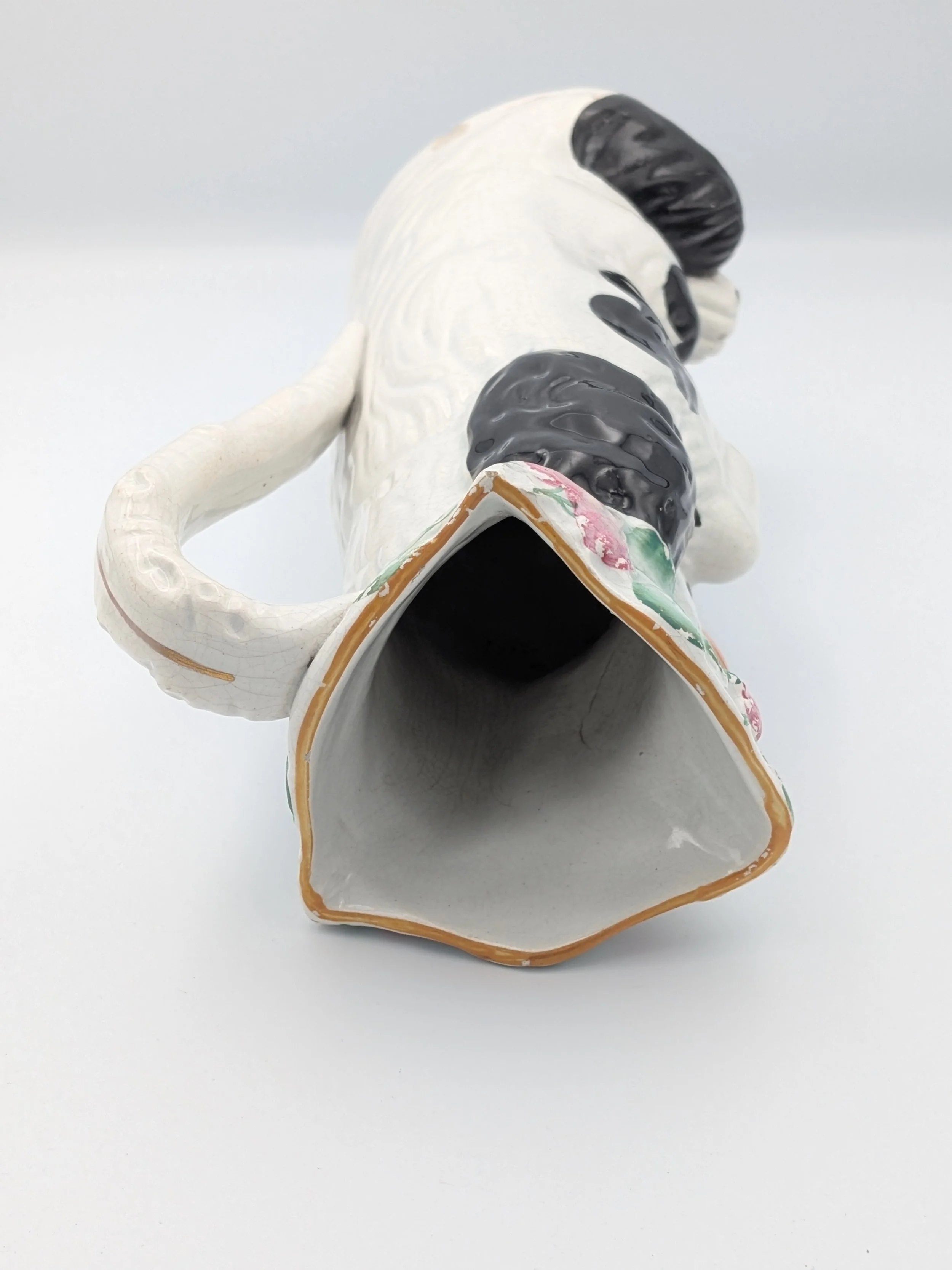 The popularity of Staffordshire figures waned towards the end of the 19th century. Figures tended to be larger and more sparsely decorated. From the end of the 19th century onwards, Staffordshire figures were ‘slip cast’ and were often spray coloured (rather than hand-painted), although the William Kent Factory continued to produce ‘Old Staffordshire Ware’ using the same production methods (and often the same moulds) as the Victorian potters well into the 20th century.