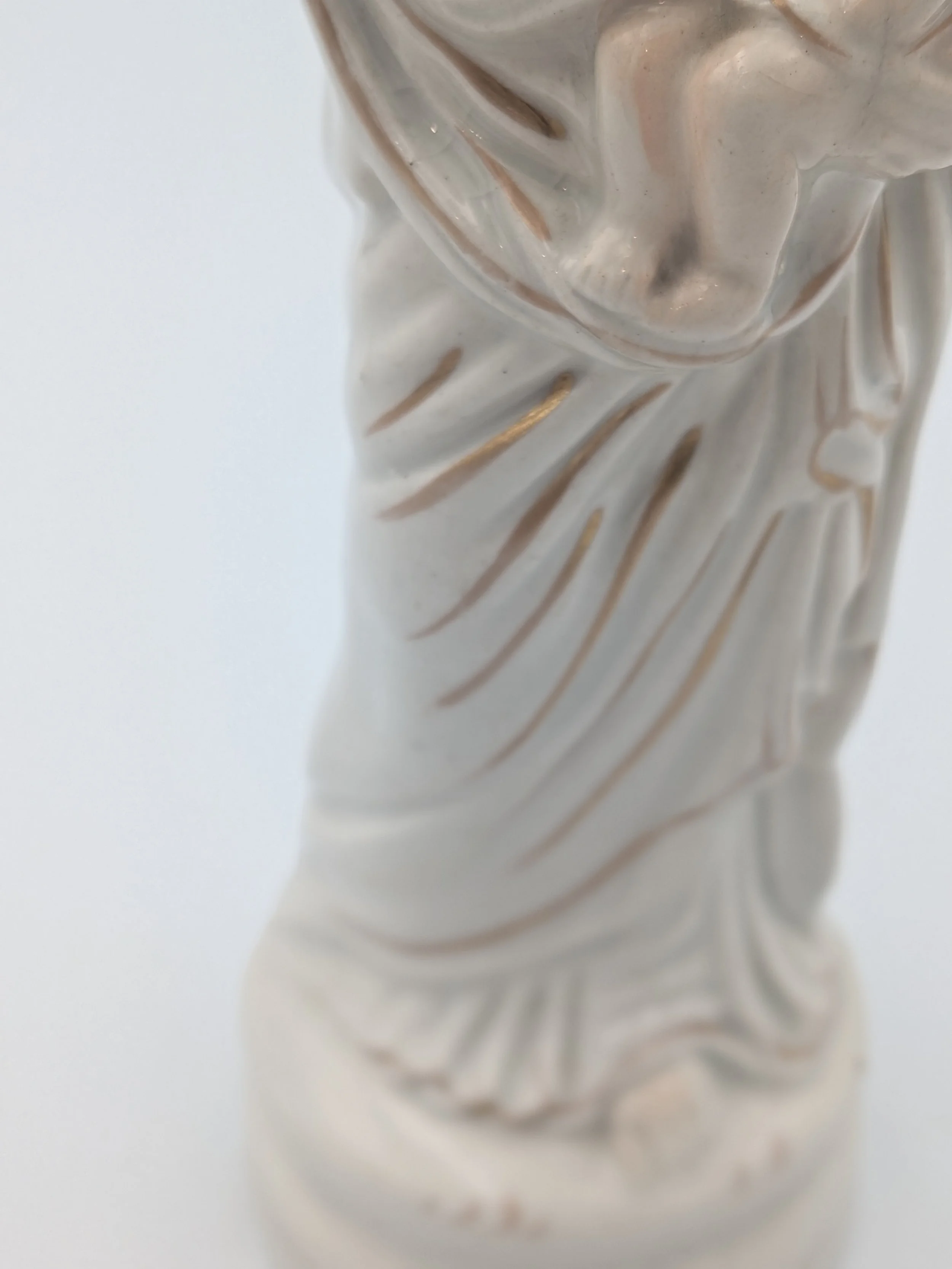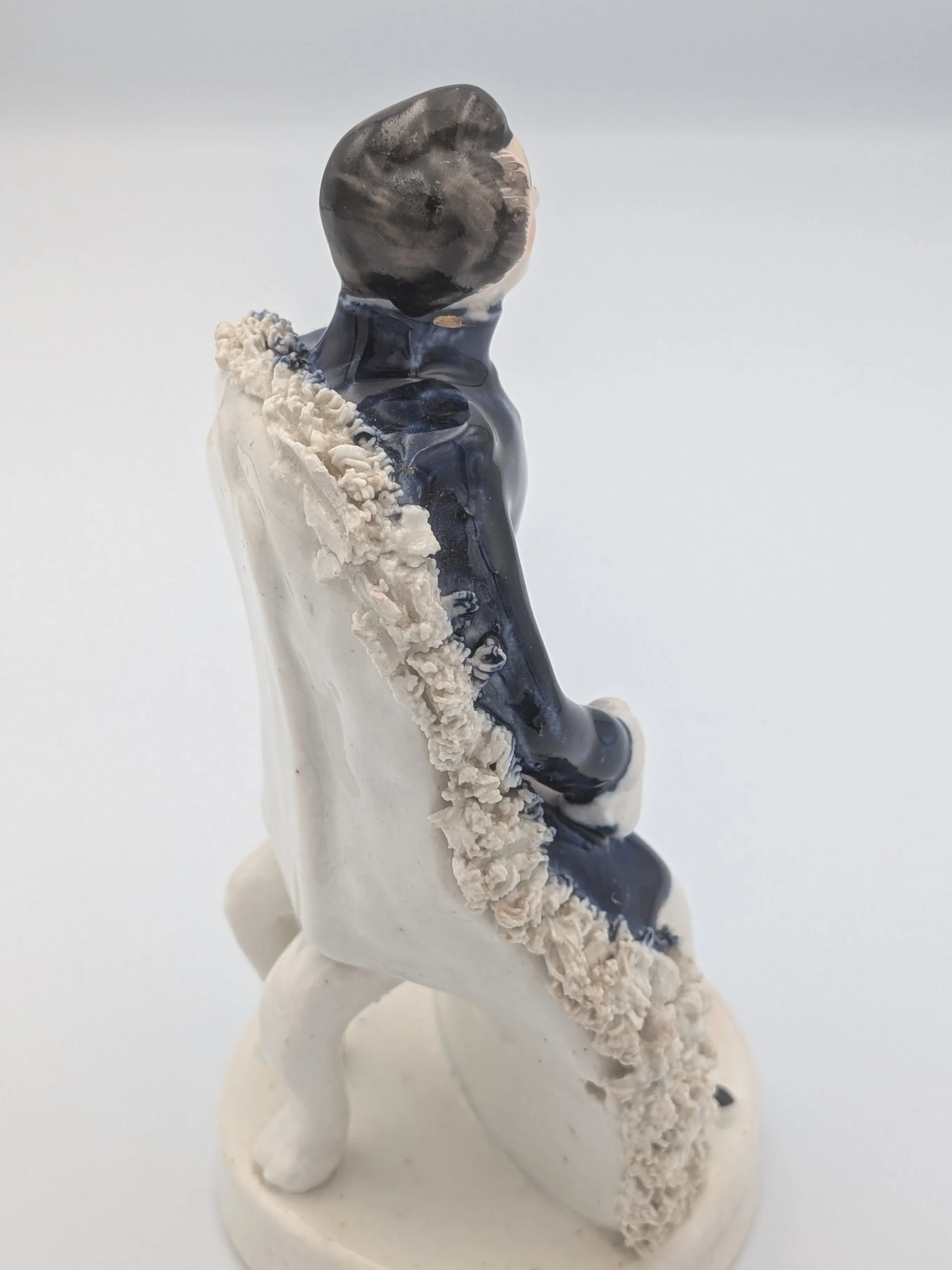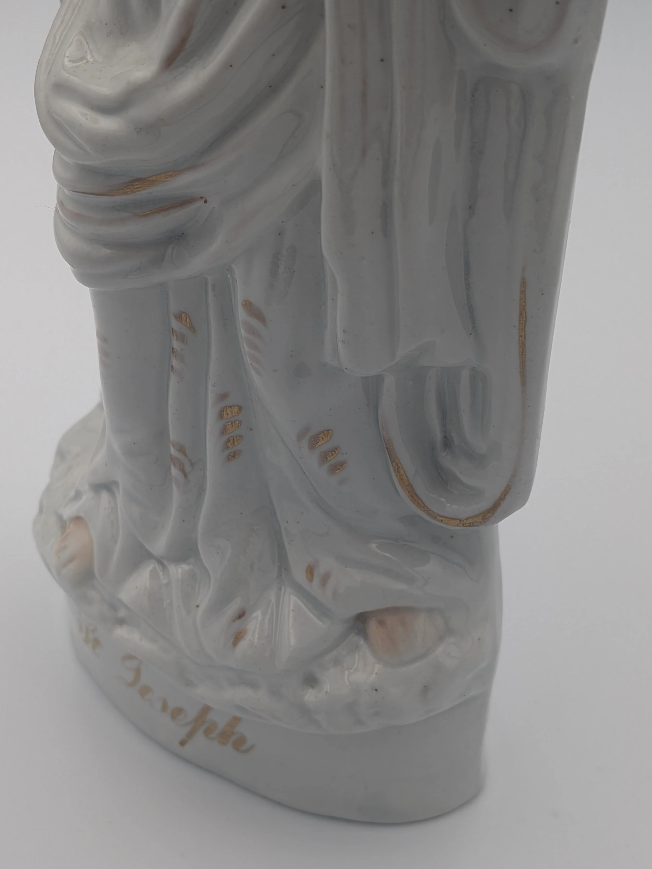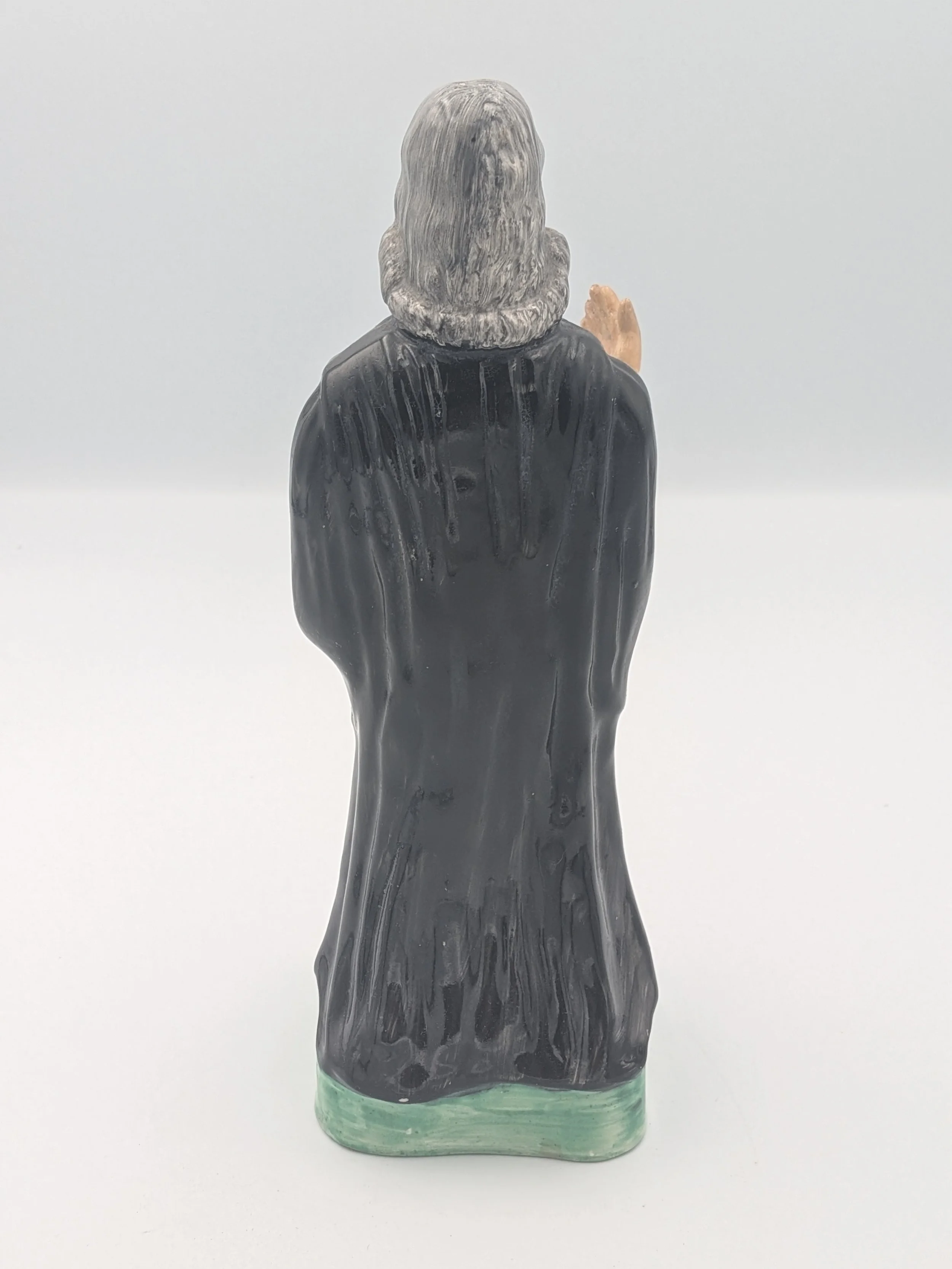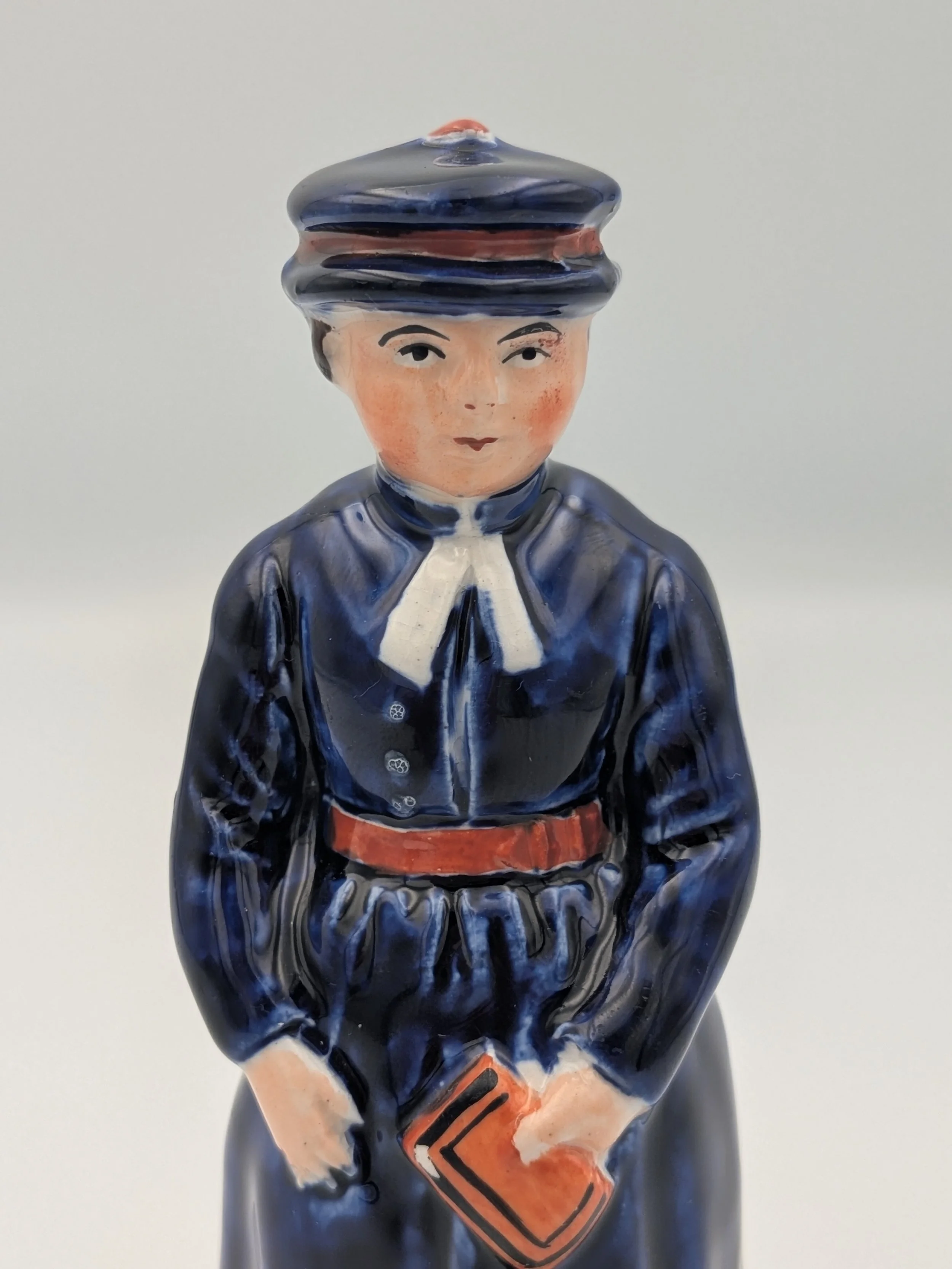 The popularity of Staffordshire figures waned towards the end of the 19th century. Figures tended to be larger and more sparsely decorated. From the end of the 19th century onwards, Staffordshire figures were ‘slip cast’ and were often spray coloured (rather than hand-painted), although the William Kent Factory continued to produce ‘Old Staffordshire Ware’ using the same production methods (and often the same moulds) as the Victorian potters well into the 20th century.